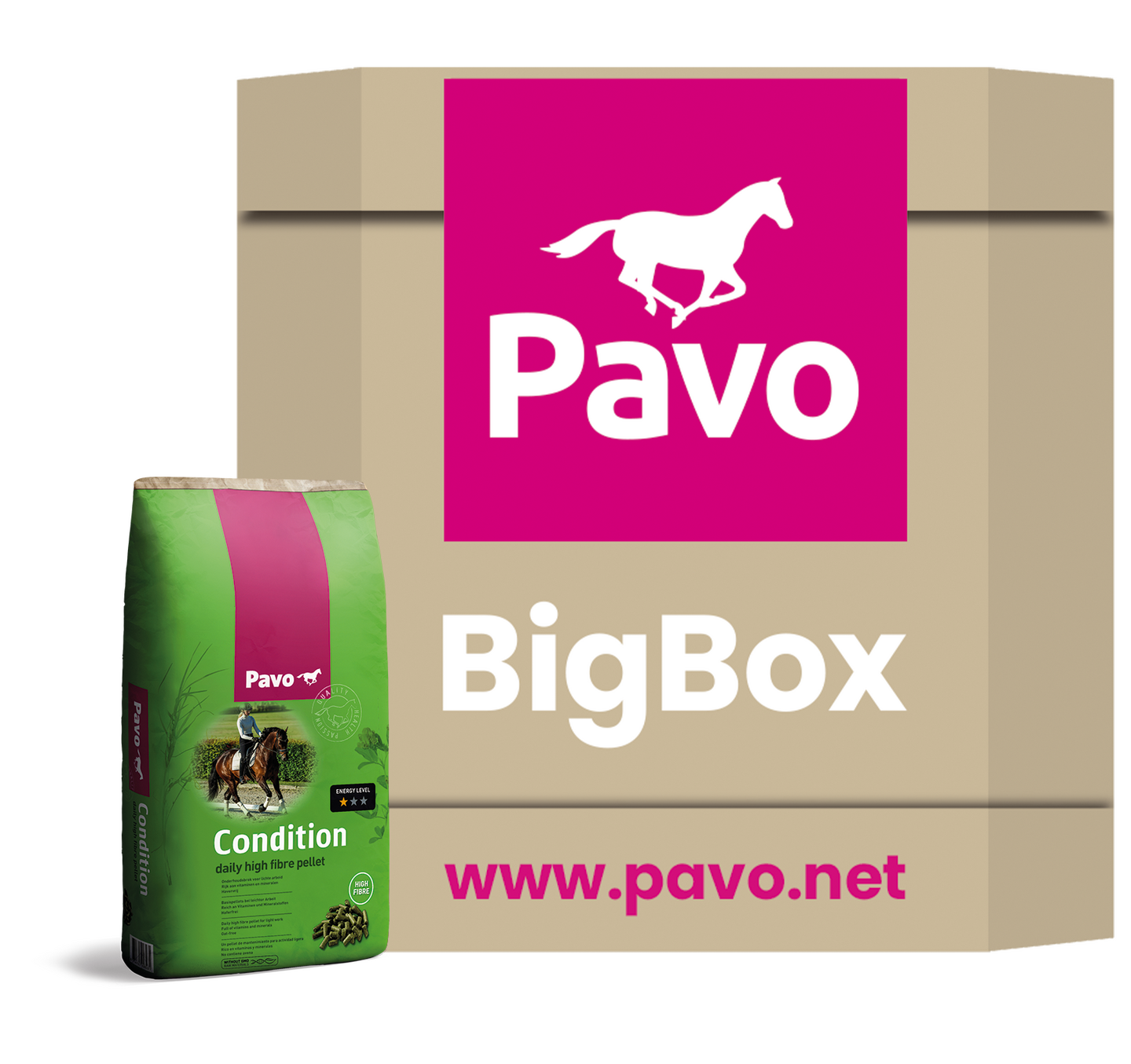 Pavo SportCondition PRO is een hoogwaardig krachtvoer voor paarden en pony’s die tot en met middelzwaar niveau getraind worden. Deze brok bevat voldoende goed opneembare energie om te kunnen presteren, zonder dat paarden en pony’s er heet van worden. Pavo SportCondition PRO bevat voldoende eiwitten om de spieren te ondersteunen voor middelzware prestatie. Daarnaast is deze brok rijk uitgerust in alle vitamines en mineralen die belangrijk zijn voor sportpaarden en -pony’s, zoals vitamine E, selenium en magnesium. Verder bevat de Pavo SportCondition PRO extra lijnzaad voor een mooie glanzende vacht.